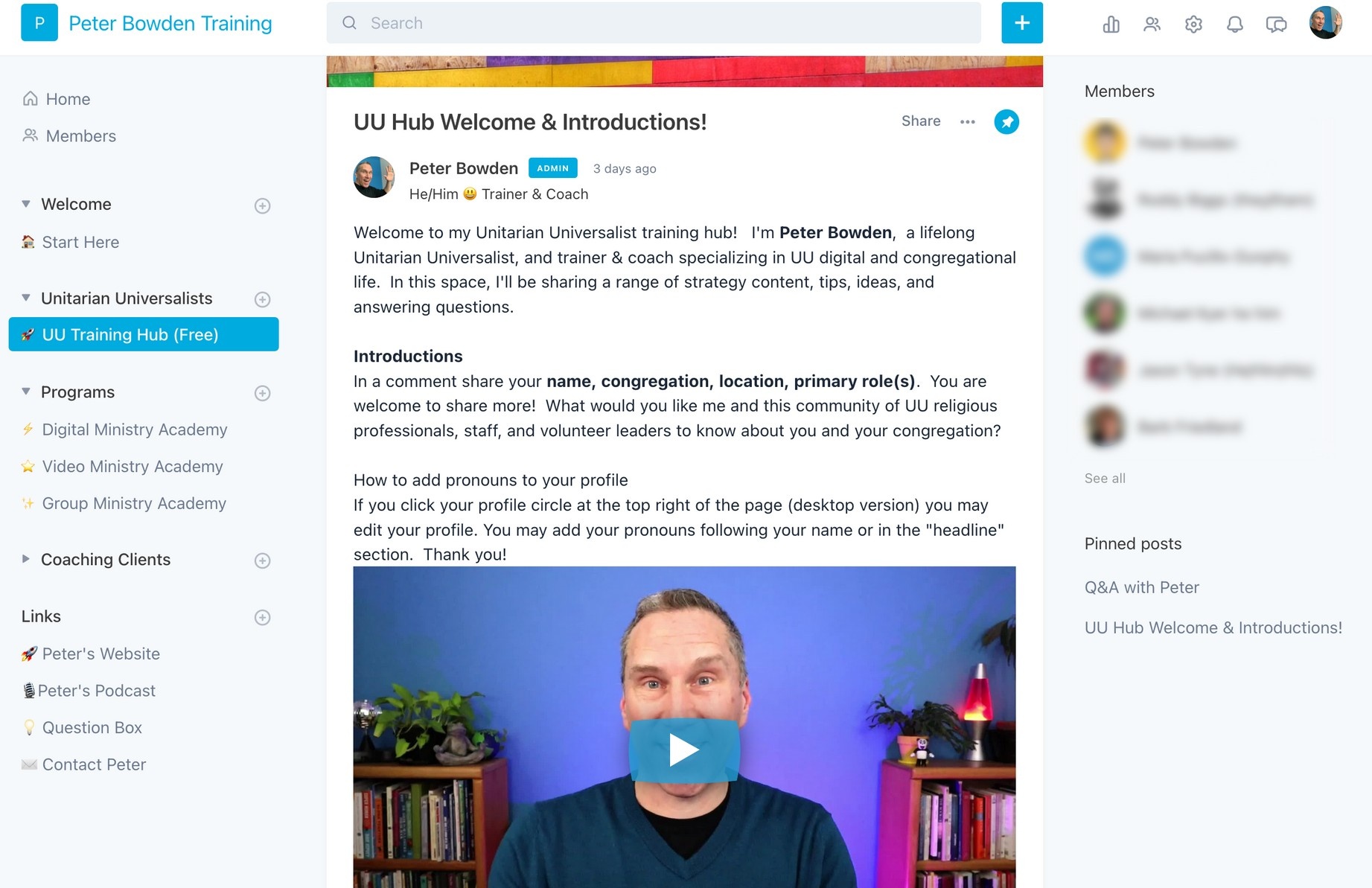 In the Spring of 2022 I led a live stream series presenting an overview of the video strategies I recommend using to connect, engage, and inspire participation in congregational life. This free series was sponsored by the Unitarian Universalist Association and is now available through the UUA's online course site, the UU Institue.